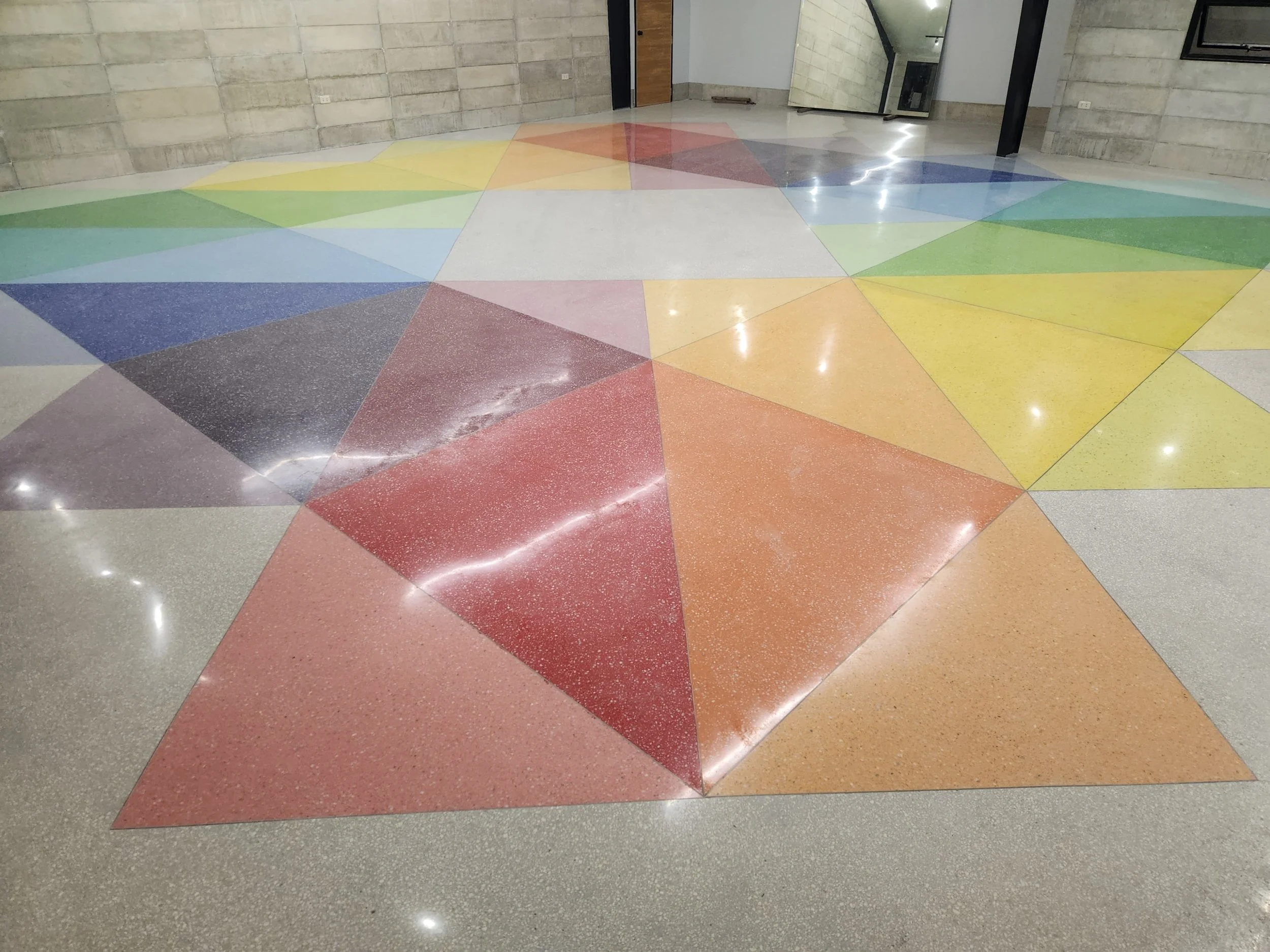 Poured-in-place Terrazzo is one of the most durable floor systems today. A seamless floor system reduces the number of grouts, which makes it easier to maintain compared to a tiled floor with grout joints. Our Polyester Terrazzo is built to last with high compressive and flexural strengths and durability outlasting other flooring materials. Terrazzo is one of the most cost-effective materials for your projects; residential, commercial, institutional, or industrial. You can trust it will last as long as the building. Over time the surface will become duller and look aged, but this can be removed by a deep clean, re-grind, and re-polish which will bring the Terrazzo back to near new.