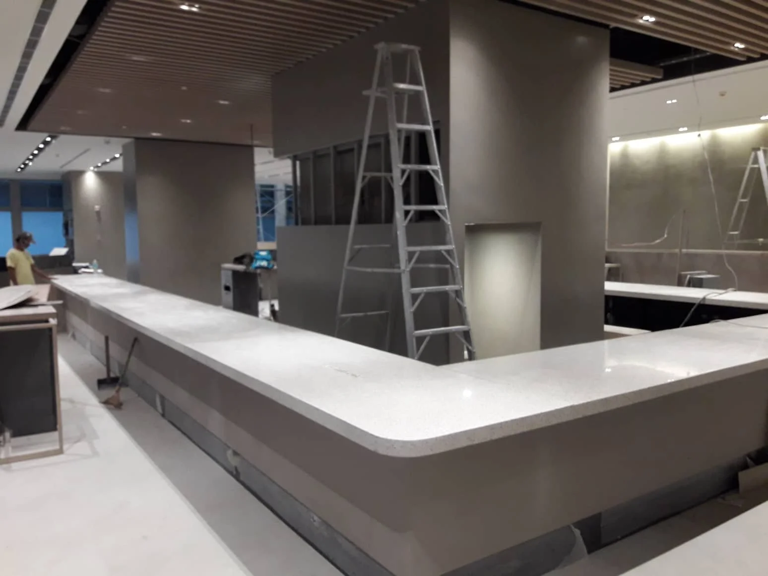 Polyester terrazzo countertops are highly durable and built to withstand daily use. Their seamless surface reduces joints and crevices, making them easier to clean and maintain compared to tiled countertops with grout lines. Our polyester terrazzo offers high compressive and flexural strength, ensuring long-lasting performance even in demanding kitchen or commercial environments. It is also a cost-effective choice for residential and commercial applications, with a lifespan that can match the structure it is installed in. Over time, the surface may become dull or show signs of wear, but this can be restored through deep cleaning, re-grinding, and re-polishing, bringing the countertop back to a near-new finish.